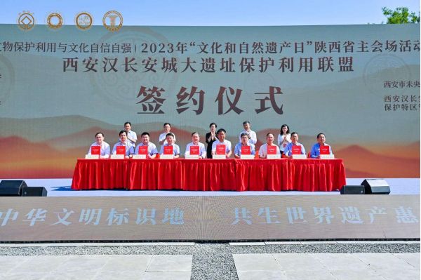 為深入探索漢長安城遺址保護利用新路徑,漢長安城特區(qū)管委會與陜西省高等院校、科研院所攜手成立“大遺址保護利用聯(lián)盟”,并在現(xiàn)場舉辦了簽約儀式,旨在圍繞文化傳承、科學研究、人才培養(yǎng)、社會服務等建立長期、深入的戰(zhàn)略合作關系?;顒蝇F(xiàn)場,還舉辦了第三屆“最美陜西文物安全守護人”表彰儀式、“陜西省考古地質(zhì)研究中心”授牌儀式,公布了沿黃文化主題游徑、中共中央轉(zhuǎn)戰(zhàn)陜北主題游徑和大漢文化主題游徑等陜西省首批文物主題游徑。