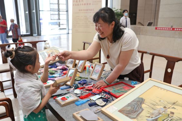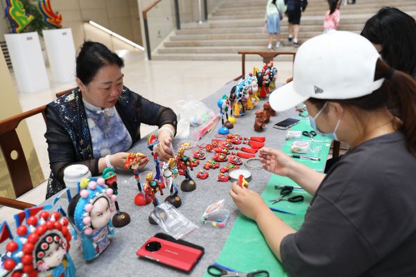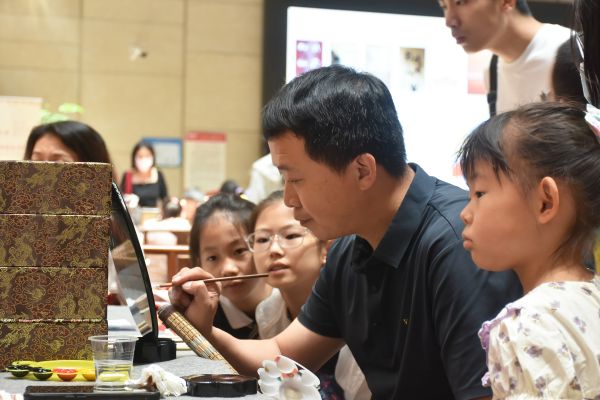 在平遙推光漆器髹飾技藝體驗區(qū),活潑可愛的貓咪、亭亭玉立的荷花,活靈活現(xiàn)地展現(xiàn)在漆器上。在平遙木雕神像傳統(tǒng)技藝體驗區(qū),孩子們細(xì)細(xì)雕刻著手中的作品,沉浸在創(chuàng)作的樂趣中。在晉中面塑技藝體驗區(qū),不少觀眾親手制作出惟妙惟肖的專屬面塑人物。在平遙傳統(tǒng)(白)銅器制作技藝體驗區(qū),在陣陣“叮叮當(dāng)當(dāng)”的金屬敲擊聲中,一件件亮閃閃的生肖掛件制作完成。在堆繡傳統(tǒng)制作技藝體驗區(qū),精美細(xì)膩的堆繡也吸引了不少人圍觀,大家紛紛向傳承人詢問剪裁和針法的方法技巧。