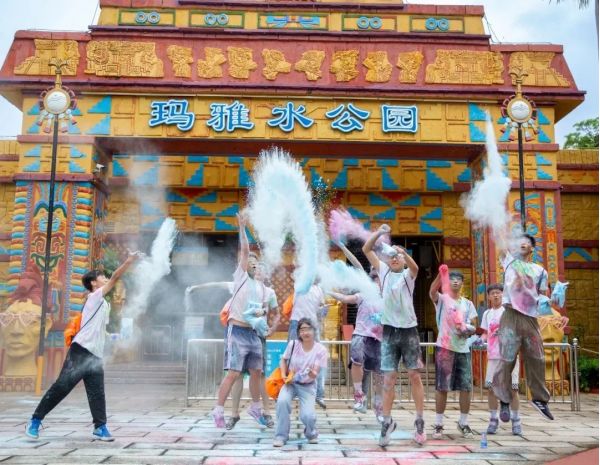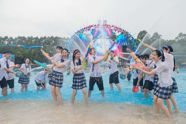 除了彩虹跑,盛夏的水上樂園也迎來了畢業(yè)生們的狂歡。在廣州長隆水上樂園,數(shù)百名來自廣州各校的畢業(yè)生們,手持各種水戰(zhàn)道具,在造浪池邊盡情釋壓,充分享受成績開分前極致、純粹的快樂。