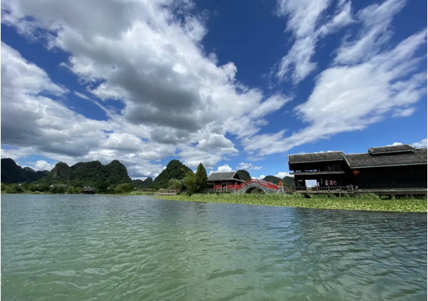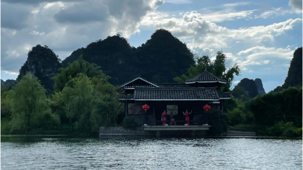 早餐后,游覽原汁原味、原生態(tài)、具有濃郁廣西少數(shù)民族風(fēng)情的《劉三姐》電影拍攝實景地—【經(jīng)典劉三姐大觀園】(AAAA級景區(qū),游覽時間約120分鐘),景區(qū)內(nèi)具有壯族特色的金蟾對歌臺,造型奇特,令人大開眼界。