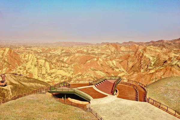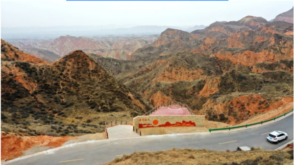 沿著棧道蜿蜒向上,隨著視角逐漸抬高眼前的水墨丹霞景區(qū)美景,絲路霞光、九色丹青、丹頂攬勝,更遠(yuǎn)方景區(qū)的天際線盡收眼底。