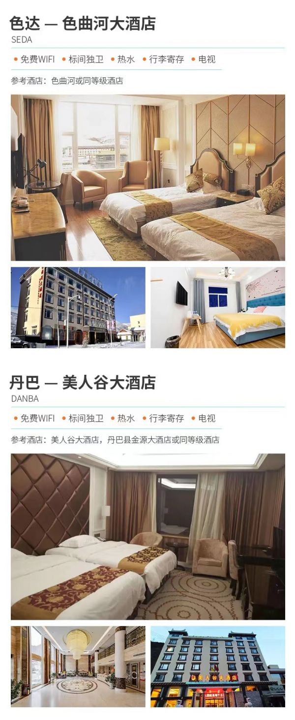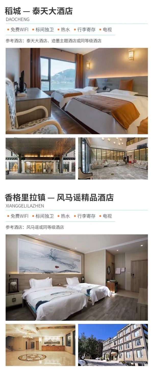 溫馨提示:(1)根據(jù)實際情況,稻城和香格里拉鎮(zhèn)酒店安排其一入住。