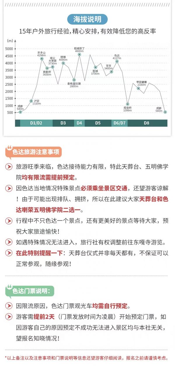 (8)旅游旺季來臨,色達接待能力有限,特此天葬臺、五明佛學院均有限流需提前預定。