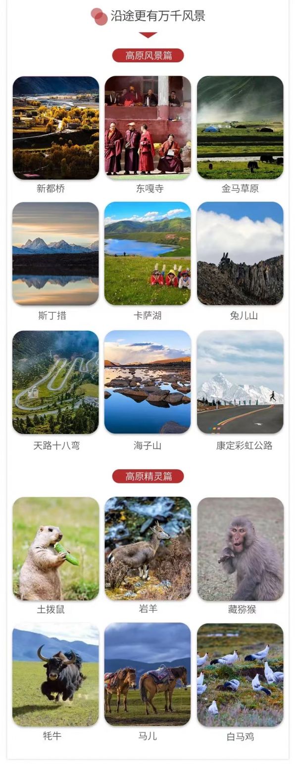 2、禁忌:川西地區(qū)受宗教影響,風俗習慣有所不同,游覽時(如進寺廟),請謹記當?shù)仡I隊宣布的有關旅游注意事項,入鄉(xiāng)隨俗,在任何場合下都不要提及有關少數(shù)民族的政治問題。行程若存在景點需騎馬,為您的安全著想,騎馬必須由馬夫牽韁方能騎行,請勿獨自騎馬或騎馬奔跑,險路及下坡路必須下馬步行,否則造成的損傷,概由游客自行承擔