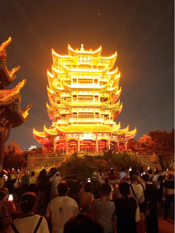 作為文化和旅游部第一批全國智慧旅游沉浸式體驗新空間培育試點項目,“夜上黃鶴樓”以黃鶴樓公園為載體,選取園內8處景點,通過“光影+演藝”的方式,讓游客在徐徐展開的光影畫卷中走入千年歷史。