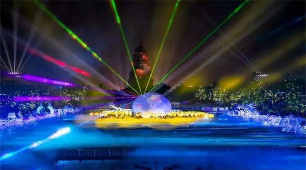 而在幾百公里之外的印象濟南·泉世界內(nèi),“光影·水秀”在夜幕降臨之時如約而至。與音樂翩翩起舞的投影、與燈光遙相呼應的水花,變成了光與霧的海洋,點亮了濟南西城的秋夜。