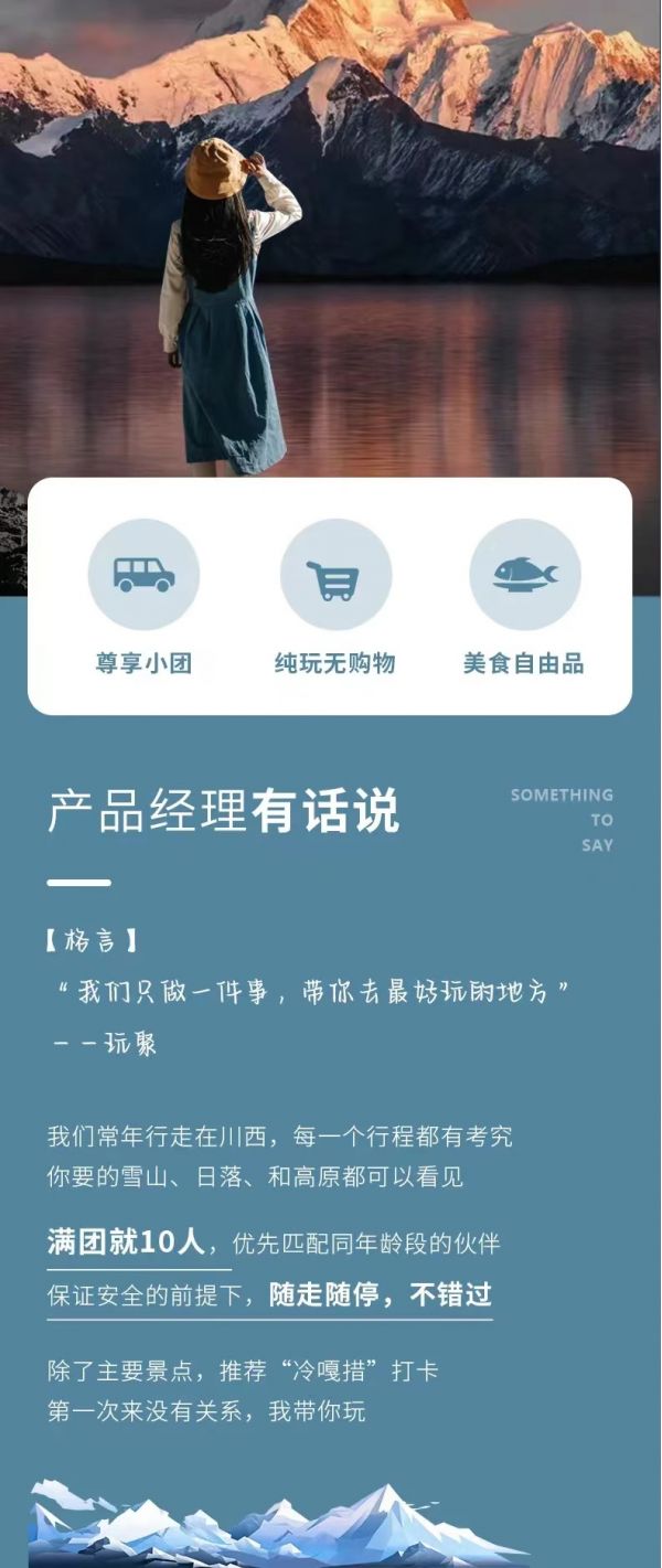 私人訂制:我們業(yè)務(wù)范圍囊括了全國各大城市,川西、西北、新疆、西藏,在路上永遠有我們的身影。我們將為每一個有定制需求的你策劃出獨屬于自己的完美旅行。