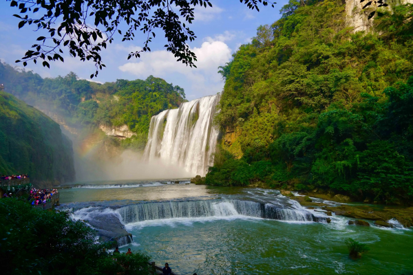 1.黃果樹瀑布自明代旅行家徐霞客目睹到它以后,黃果樹瀑布便吸引著一代代慕名者前來游歷。瀑布高77.8米,寬101米,水勢浩大、連綿不絕。黃果樹瀑布,安順市鎮(zhèn)寧布依族苗族自治縣,是珠江水系打邦河的支流白水河九級瀑布群中規(guī)模最大的一級瀑布。瀑布集高、大、多、美、奇諸多特點于一身,站在大坡頂遙望整個瀑布,瀑布就恍如身著白色衣裙的天仙,儀態(tài)萬方地從萬頃冷綠中露出她的身姿。來到黃果樹瀑布才知道,世間竟有將雄壯與柔美結(jié)合如此之好的景色。橫跨瀑身的水簾洞,可以近距離感受大瀑布的沖擊力,不可錯過。