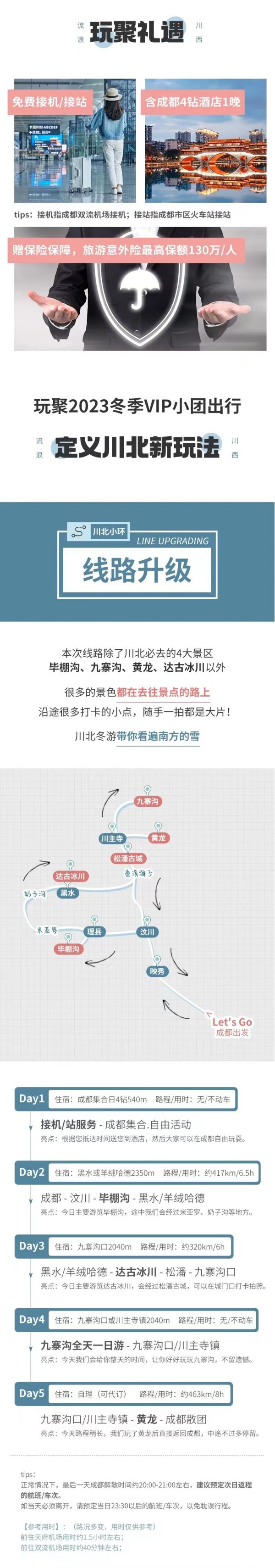 D5九寨溝口/川主寺鎮(zhèn) - 黃龍風(fēng)景區(qū) - 成都散團(tuán)行駛里程:463km 行車時(shí)間:約8小時(shí)