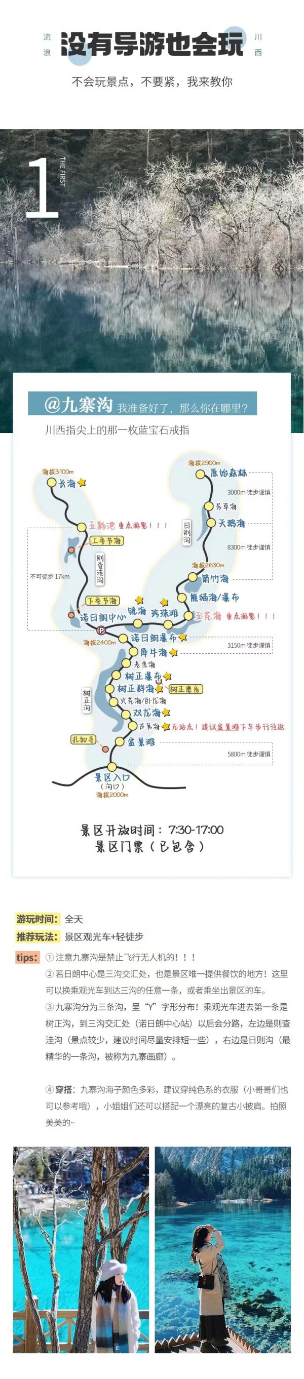 4、九寨溝景區(qū)實(shí)行分區(qū)域開放,開放區(qū)域?yàn)闇峡诮?jīng)諾日朗瀑布至長(zhǎng)海,扎如溝的扎如寺及日則溝的鏡海;其中,長(zhǎng)海、五彩池、鏡海、諾日朗瀑布、樹正群海、雙龍海瀑布、扎如寺等景觀原則上為步行游覽區(qū),具體游覽方式請(qǐng)聽(tīng)從隨車講解員安排。