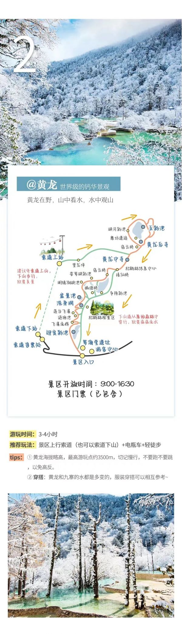 (4)冬季黃龍景區(qū)索道停運(yùn),游覽景區(qū)以徒步游覽為主,游客朋友根據(jù)自身體力進(jìn)行選擇游玩量力而行。