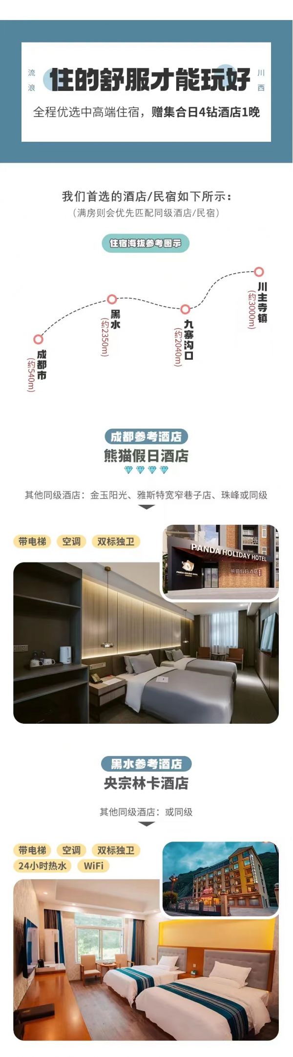 ? 住宿:九寨溝口或川主寺鎮(zhèn)