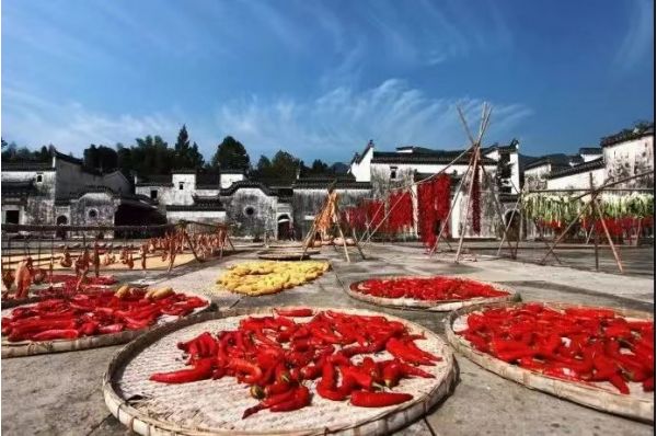 早餐后游覽呈坎八卦村景區(qū)??赡艽蠹疫€不知道呈坎可是曬秋民俗文化的發(fā)源地,古徽州的曬秋民俗可以追溯到東漢時(shí)期,呈坎是徽州地區(qū)保存最完整的千年古村落。每當(dāng)日出山頭,晨曦映照,整個(gè)山間村落飽經(jīng)滄桑的徽式民居曬場(chǎng)上與曬架上、圓圓曬匾里五彩繽紛豐收果實(shí)組合,曬出豐收,曬出喜悅,繪就出世界獨(dú)一無二的農(nóng)俗景觀。