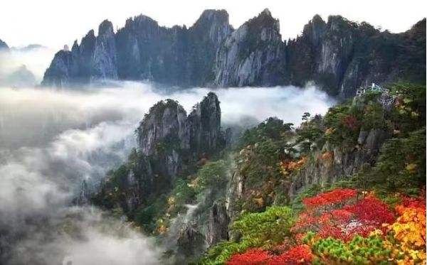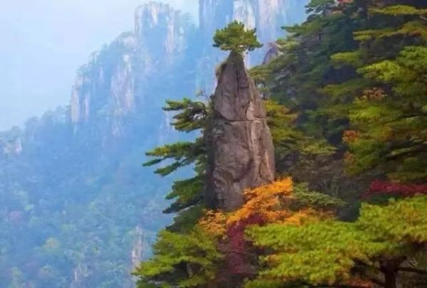 黃山“黃山歸來(lái)不看岳”,這是吸引眾多游客登黃山賞美景的一大理由。這個(gè)季節(jié),如畫(huà)的秋色為黃山平添了幾份秀美。黃山的秋天來(lái)得早,到了10月,黃山的月平均氣溫只有11.7℃。黃山的秋季,別有種種勝景,明代大旅行家徐霞客曾贊美黃山秋色“楓林相間,五色紛披,燦若圖繡”。仰望天空,黃山的天湛藍(lán)如洗,入了秋更顯得高遠(yuǎn),空曠無(wú)邊、萬(wàn)里無(wú)云,更無(wú)一絲雜質(zhì),像一塊覆蓋大地的藍(lán)寶石。秋用赤、橙、黃、綠、青、藍(lán)、紫七色神筆把黃山描繪得色彩斑斕,濃墨重彩地勾勒燦若圖繡的世界,遠(yuǎn)峰近松,到處充滿了秋色的誘惑,讓人難以抗拒。