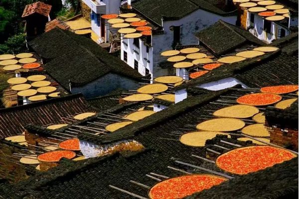 早上:08:00-08:30 各酒店接客人后出發(fā),后車(chē)赴婺源,游“賞花圣地”、“全球十大最美梯田”、“世界級(jí)古村樣板”、“美術(shù)、攝影及影視創(chuàng)作基地”——【篁嶺】,景區(qū)獨(dú)特的“曬秋”景觀符號(hào)成功入選“最美中國(guó)符號(hào)”。篁嶺屬典型山居村落,民居圍繞水口呈扇形梯狀錯(cuò)落排布。篁嶺因“曬秋”、聞名遐邇,落“天街”似玉帶將精典古建串接,徽式商鋪林立,前店后坊,一幅流動(dòng)的縮寫(xiě)版“清明上河圖”。 周邊千畝梯田簇?fù)?,四季花海展示驚艷的“大地藝術(shù)”。 獨(dú)特的民俗文化體驗(yàn)帶您走過(guò)索橋、滑過(guò)溜索、攀上高空熱氣球,俯瞰獨(dú)特的曬秋奇觀;參天古樹(shù)濃蔭匝地,錯(cuò)落點(diǎn)綴在層疊的梯田、蜿蜒的青石板古道和曲折的清溪之間。三角梅、玫瑰等花海景觀變幻,穿行在隱約可見(jiàn)的廊橋亭閣和粉墻黛瓦的民居村落中,遠(yuǎn)離都市喧囂。