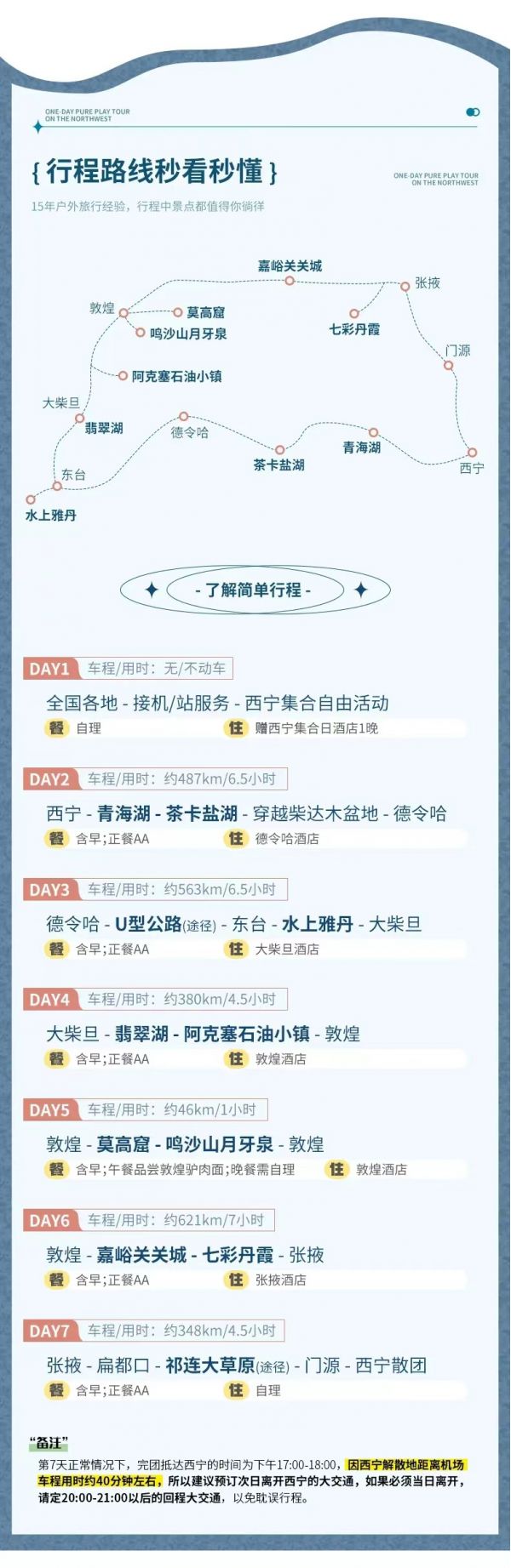 2.當(dāng)天一路人煙稀少,請大家務(wù)必準(zhǔn)備好飲用水及干糧。柴達(dá)木盆地公路開闊,行車速度較快,自由活動時一定聽從領(lǐng)隊指揮,注意安全
