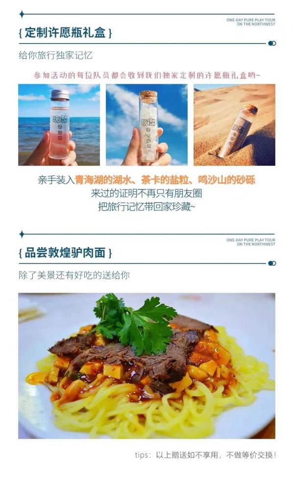 tips:西寧集合酒店為贈送酒店,酒店以實(shí)際安排為準(zhǔn)均不退不換不指定,如要更改酒店產(chǎn)生的費(fèi)用需要自行承擔(dān)。(4)品嘗敦煌驢肉面。