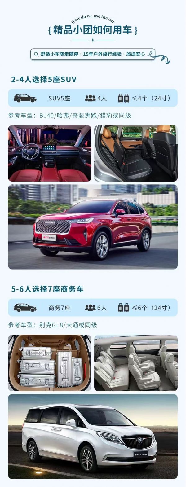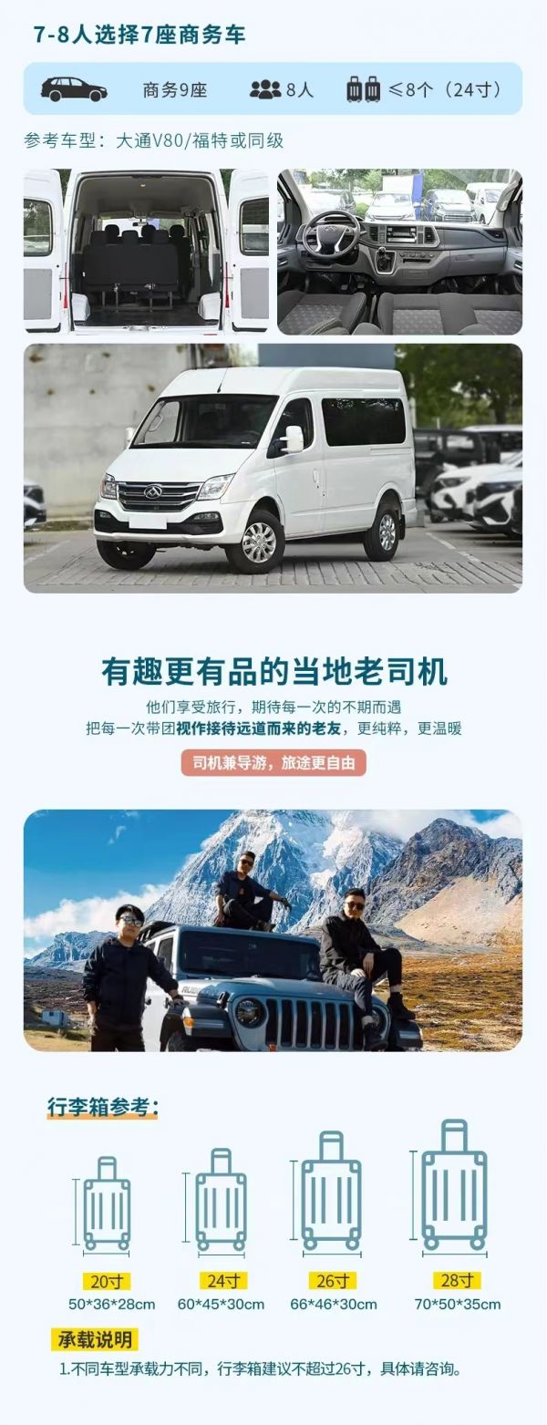 私人訂制:我們業(yè)務(wù)范圍囊括了全國各大城市,川西、西北、新疆、西藏,在路上永遠(yuǎn)有我們的身影。我們將為每一個有定制需求的你策劃出獨(dú)屬于自己的完美旅行。