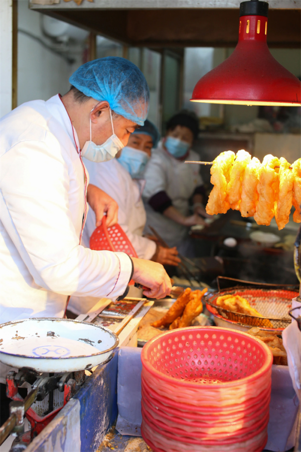 聊城最經(jīng)典的早餐當(dāng)屬呱嗒,呱嗒的餡分三種,肉餡、雞蛋餡和肉蛋混合餡,還有一種是在制作肉呱嗒半成熟的基礎(chǔ)上,在呱嗒頂端劃一道小口,將攪勻的雞蛋灌入其中的名叫風(fēng)攪雪的呱嗒,很有詩意的一種呱嗒,整體比前兩種更加厚實飽滿,味道更足一些。