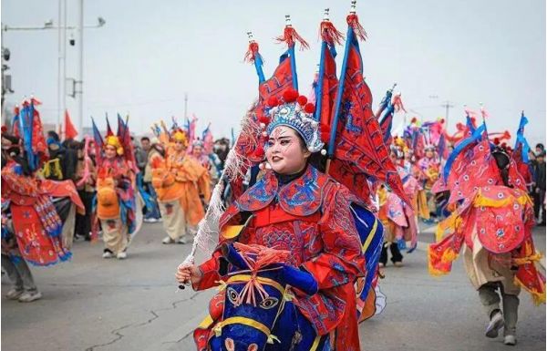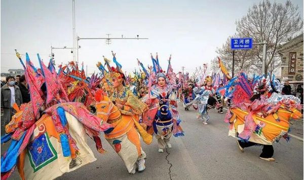 人們?yōu)楸苊饣馂?zāi),以這種方式祭祀火神,表達了勞動人民一種辟邪除災(zāi)、迎祥納福的美好愿望。“火神廟會”舉辦期間,到處人山人海,傳統(tǒng)節(jié)目有大集街高蹺、軍莊秧歌、背閣、抬閣、八卦秋、武術(shù)表演、竹馬、蓮花燈、火龍、花船等,男女演員盛裝上陣,從臉譜到服裝,無不體現(xiàn)了濃郁的傳統(tǒng)文化色彩。