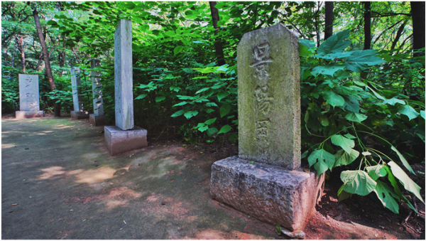 虎嘯亭:位于景區(qū)西部,六角單檐,由徐悲鴻的夫人、書法家廖靜文題名。