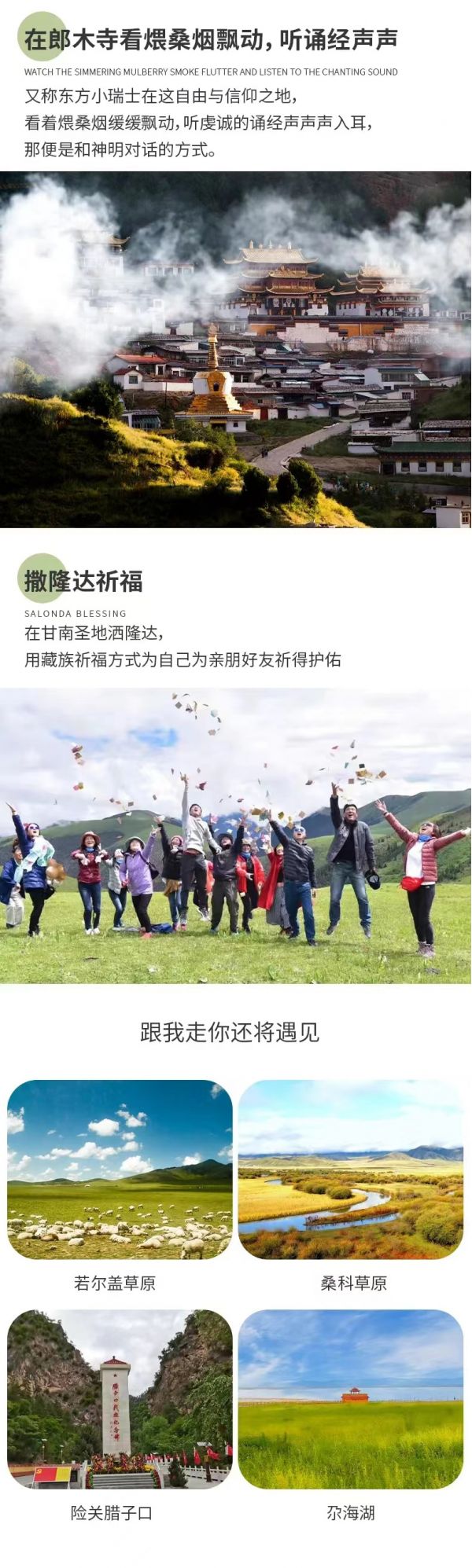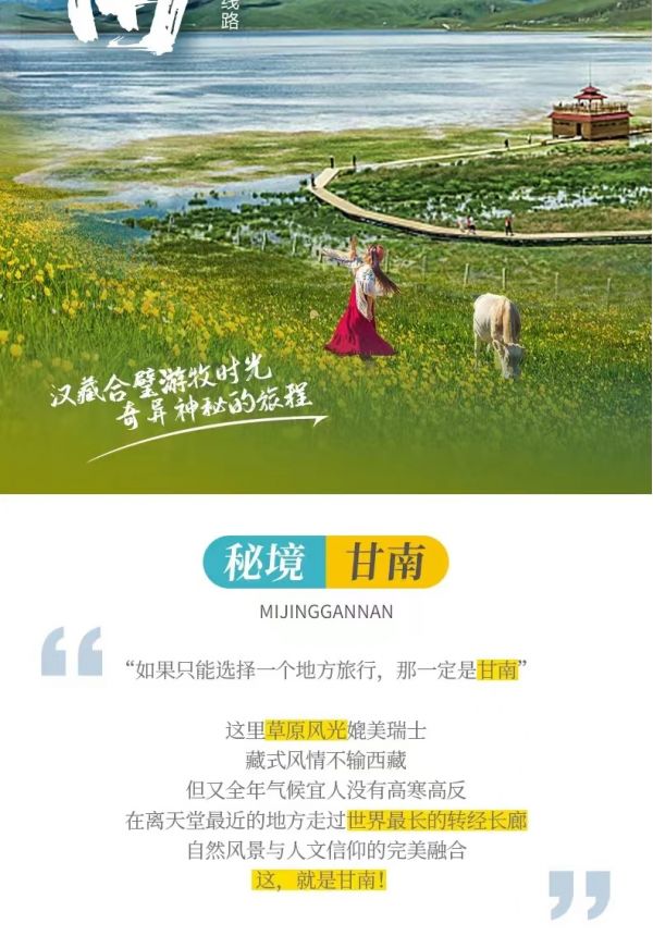 即日起甘加秘境門票內(nèi)暫不包含白石崖寺、溶洞,如需要游覽寺院內(nèi)或進(jìn)溶洞需要另行購票。購買(車票+門票)套票的游客按景交車固定路線游覽,可前往八角古城站、白石崖寺前站,白石秘境觀景臺、路過星空草原到達(dá)游客服務(wù)中心,作海寺可自行前往,給廣大游客帶來不便,還望諒解。)