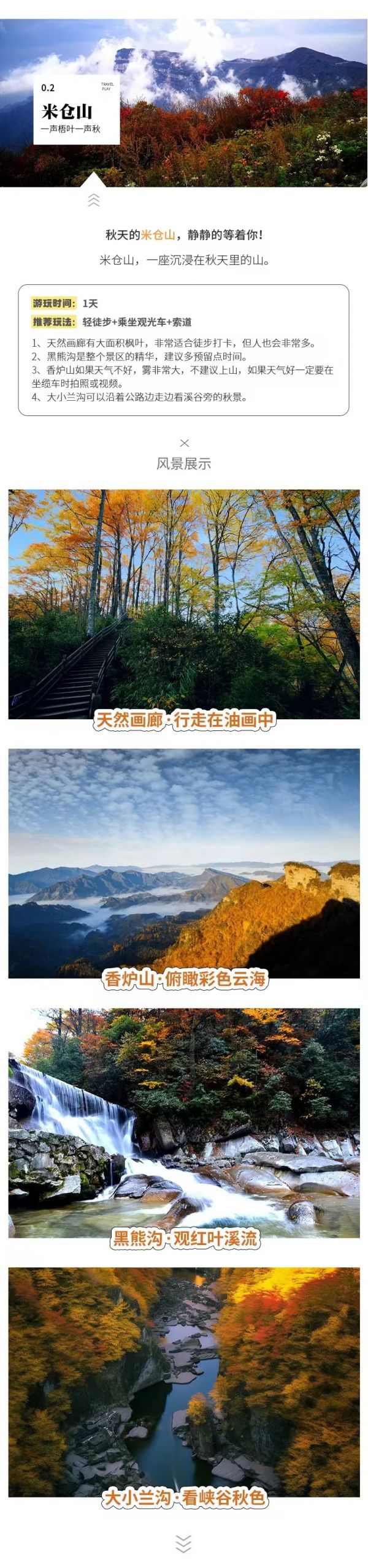 接著前往【香爐山】,香爐山海拔2300米,是川陜兩省的界山之一。如果天氣好,在五彩的紅葉山峰之間可以看到縹緲著的絕美云海,目之所及,重巒疊嶂、萬(wàn)葉飄丹、層林盡染。