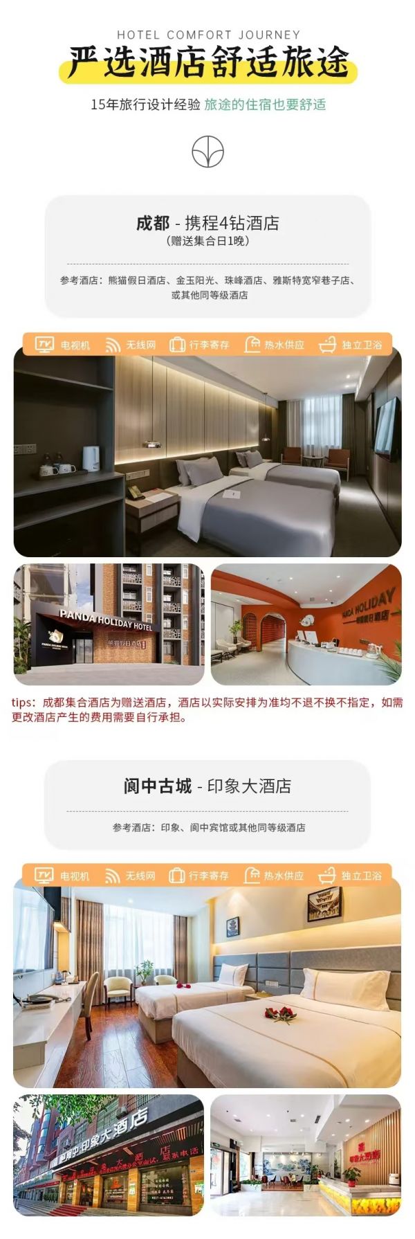住宿:成都集合日贈(zèng)送攜程4鉆酒店1晚