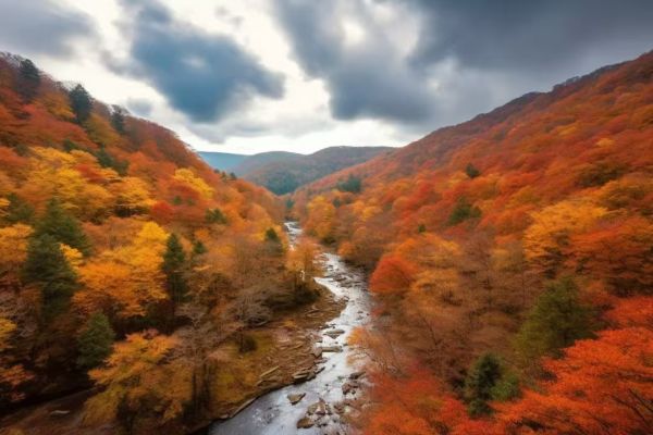 最后游玩【大小蘭溝】,與黑熊溝相比,這里有一種不同的感覺(jué),峽谷旁樹(shù)木高大壯美,彩林璀璨,整條溝內(nèi)遍布青石,青石上長(zhǎng)著厚厚的苔蘚,上面還飄落著許多紅葉,溝內(nèi)溪水不大,但蜿蜒曲折,又是一種別樣的體驗(yàn)。游覽后返回光霧山鎮(zhèn)入住。
