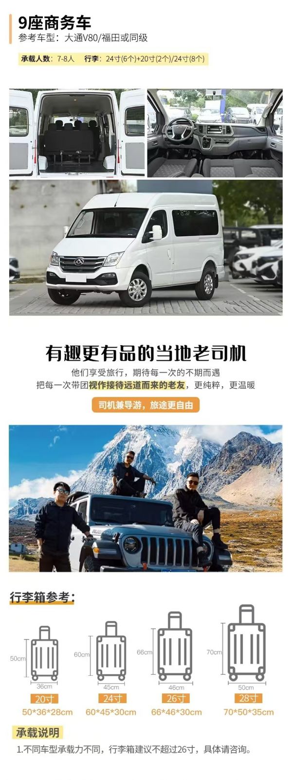 ● 服務(wù):由經(jīng)驗(yàn)豐富的司機(jī)提供向?qū)Х?wù),司機(jī)非導(dǎo)游,不進(jìn)景區(qū),敬請(qǐng)諒解。