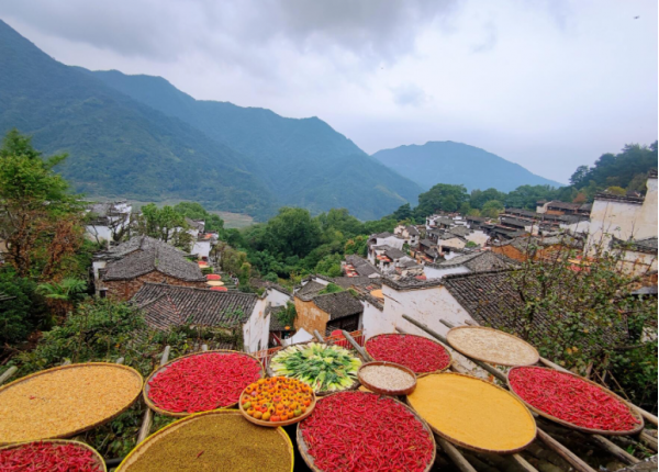抵達(dá)篁嶺后,先前往篁嶺古村。這里有錯落有致的徽派建筑,還有聞名的“曬秋”景觀。清晨的陽光灑在層層疊疊的曬匾上,色彩斑斕的農(nóng)作物構(gòu)成了極具特色的畫面。在古村的街巷中穿梭,拍攝古民居的木雕、磚雕、石雕等精美的建筑細(xì)節(jié)。