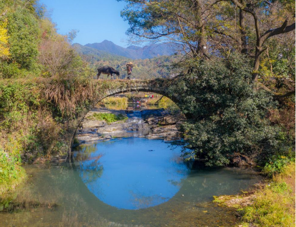 到達(dá)官坑后,拍攝官坑的古村落風(fēng)貌。官坑的建筑風(fēng)格獨特,以青石板路和古老的民居為特色??梢耘臄z村民在古橋上的活動,以及官坑村周圍的山水環(huán)繞的美景。