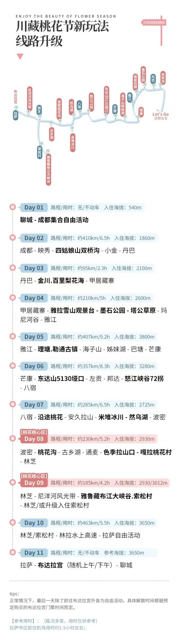 (桃花核心區(qū))波密 - 桃花溝 - 古鄉(xiāng)湖 - 通麥 - 魯朗 - 色季拉山口(南迦巴瓦最佳觀景臺)- 嘎拉桃花村 - 林芝