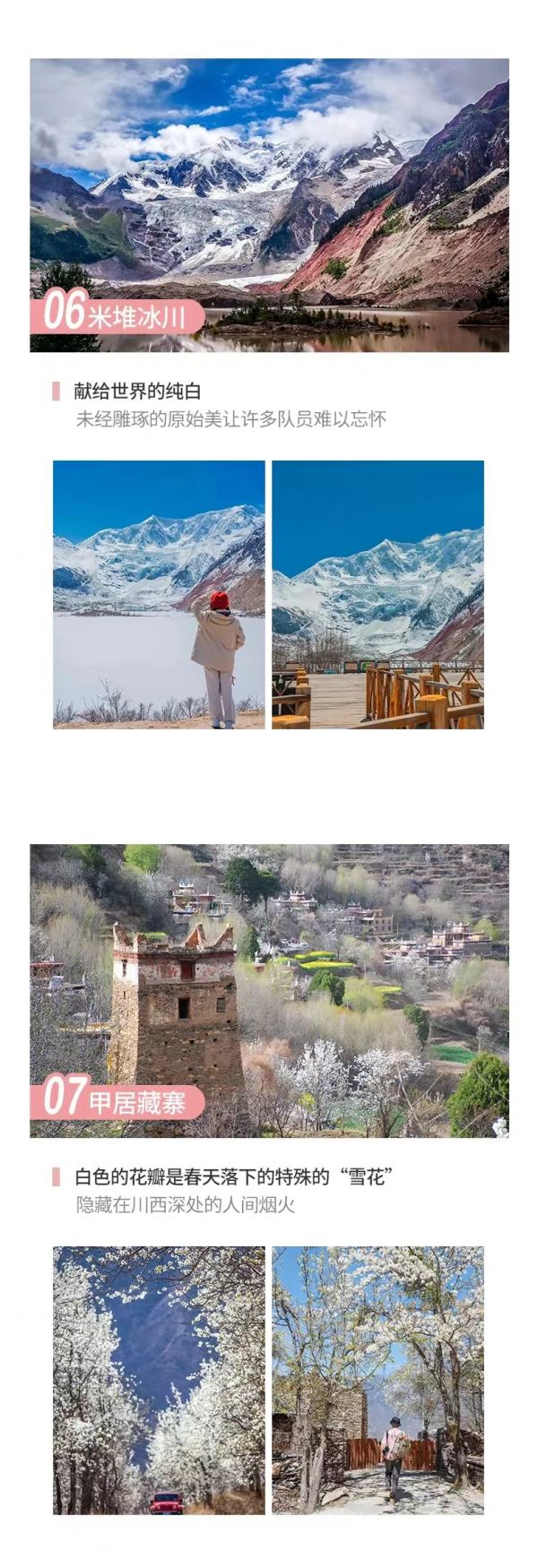 先前往觀景臺,觀賞和拍攝【金川河谷】百里梨花的壯觀景象。金川素有“中國雪梨之鄉(xiāng)”的美譽(yù),無論河壩沃土還是半山坡地,漫山遍野都栽種梨樹,每到仲春三月,萬畝梨海,百里白蕊,整個金川河谷似茫茫雪海。待拍攝結(jié)束后,沿大金川河向丹巴方向前進(jìn),沿途觀賞大渡河谷兩岸藏寨掩映在花海中的美景,這一帶是丹巴嘉絨藏族文化的起源地之一,人文景觀也頗多,可盡情游覽拍攝。