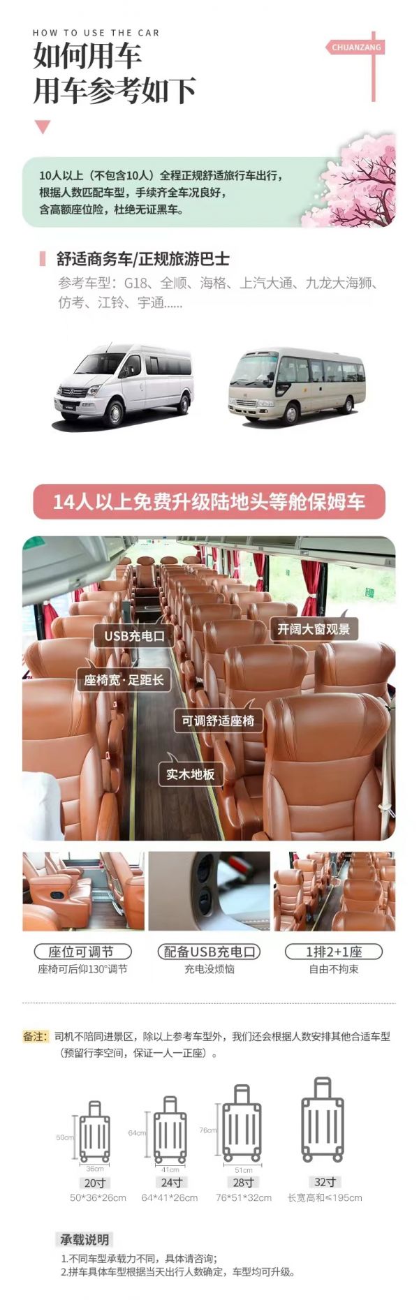 用車:15人及以上立即升級保姆車出行;為保證成團(tuán)及質(zhì)量,根據(jù)人數(shù)派不同座位數(shù)用車,保證每人一正座;包含司機(jī)一名、油費(fèi)、:過路費(fèi)、停車費(fèi),包含從出發(fā)地到景點(diǎn)及酒店費(fèi)用,不包含晚間自由活動交通;