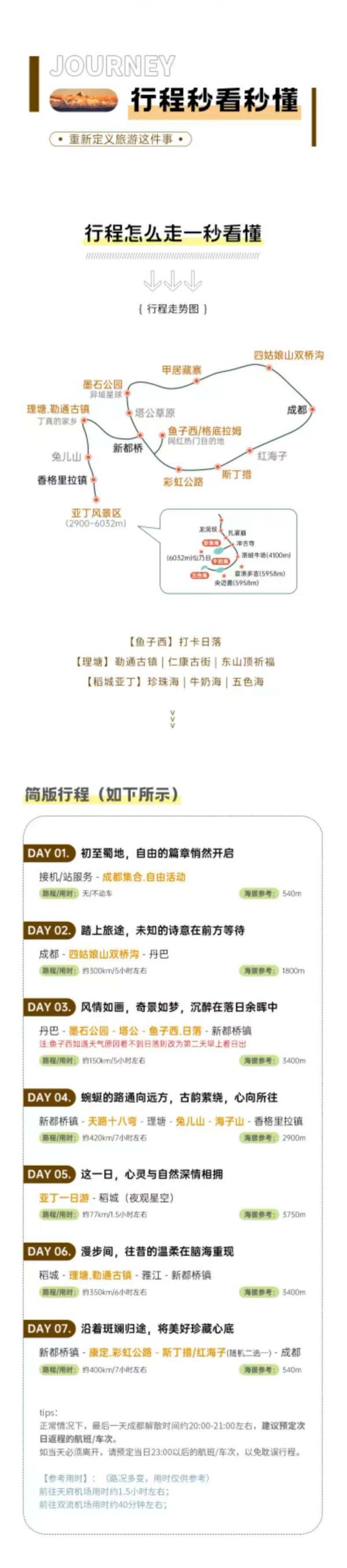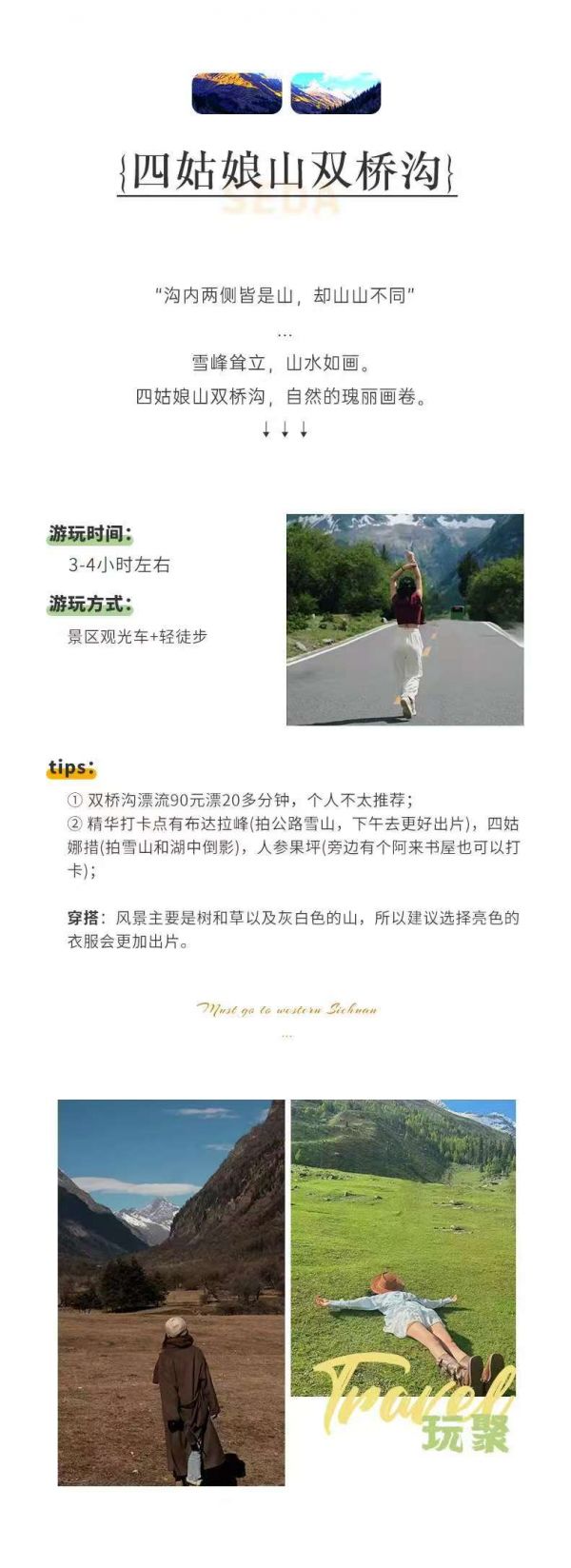 溫馨提示:四姑娘山海拔較高,可能會有輕微的高反癥狀,如頭暈、氣短等,可提前準備一些抗高反藥物。山區(qū)氣候多變,記得帶上保暖衣物和雨具。