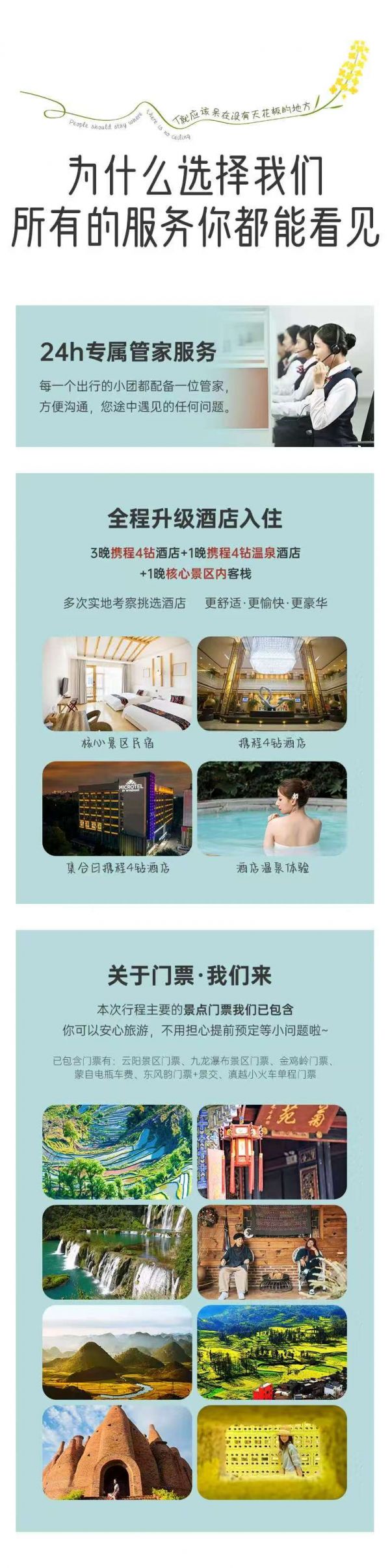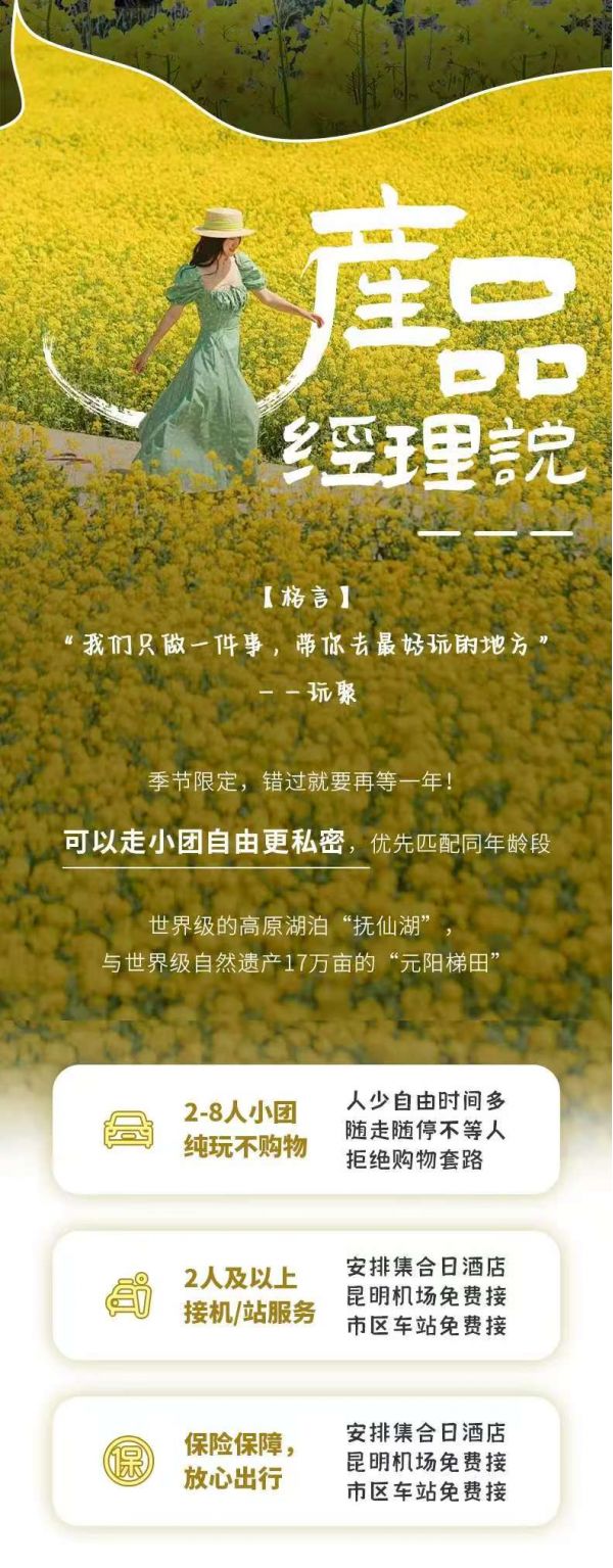 服務:贈送80w旅游意外險(不含財產(chǎn)險);2人及以上安排昆明接機/站服務;