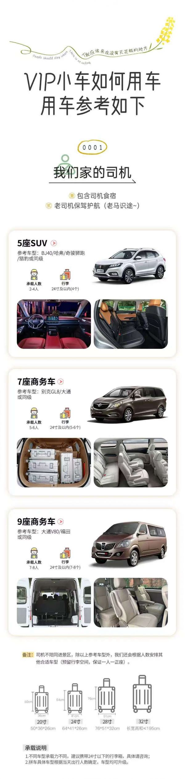 備注:車型承載力有限,攜帶行李為24寸或以下行李箱。