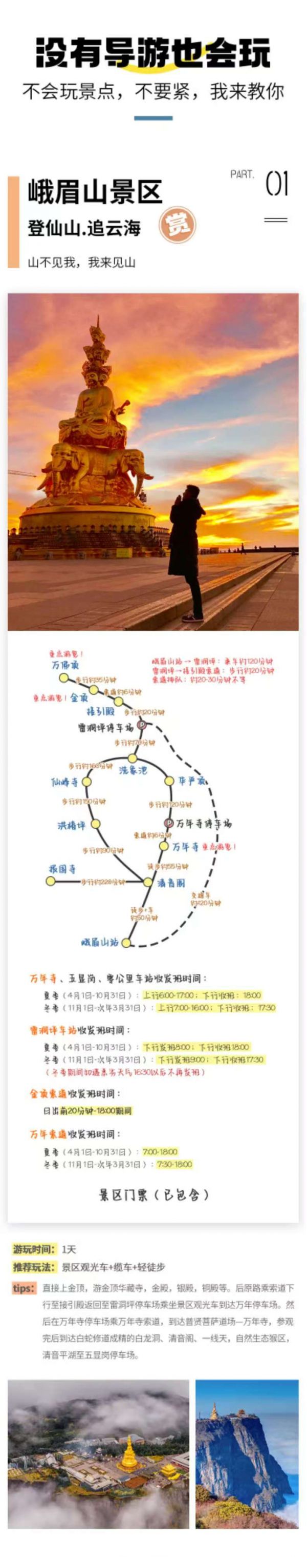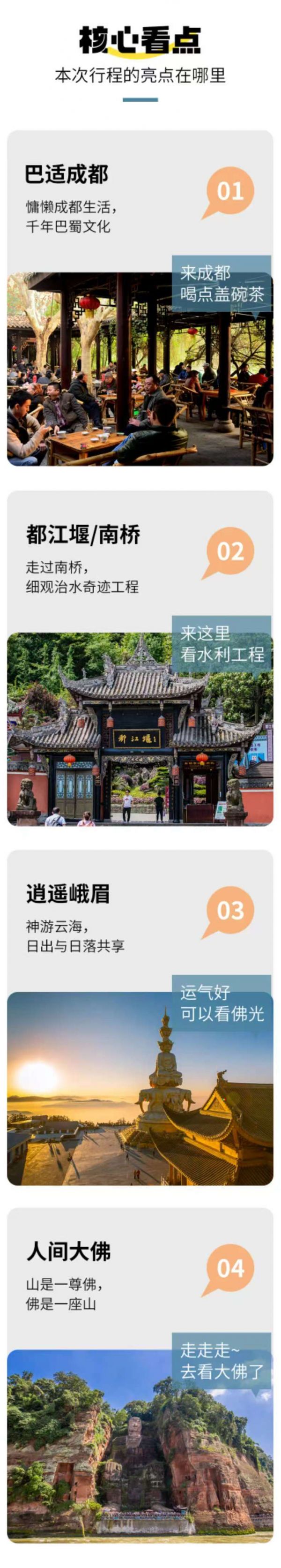 門票:樂山大佛門票、峨眉山門票、報(bào)國寺門票、熊貓基地景區(qū)門票、都江堰景區(qū)門票