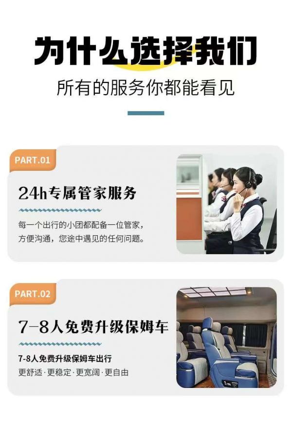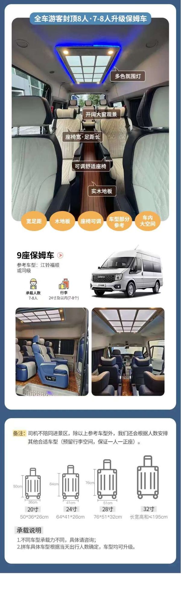 為保證成團(tuán)及質(zhì)量,根據(jù)人數(shù)派不同座位數(shù)用車,保證每人一正座;