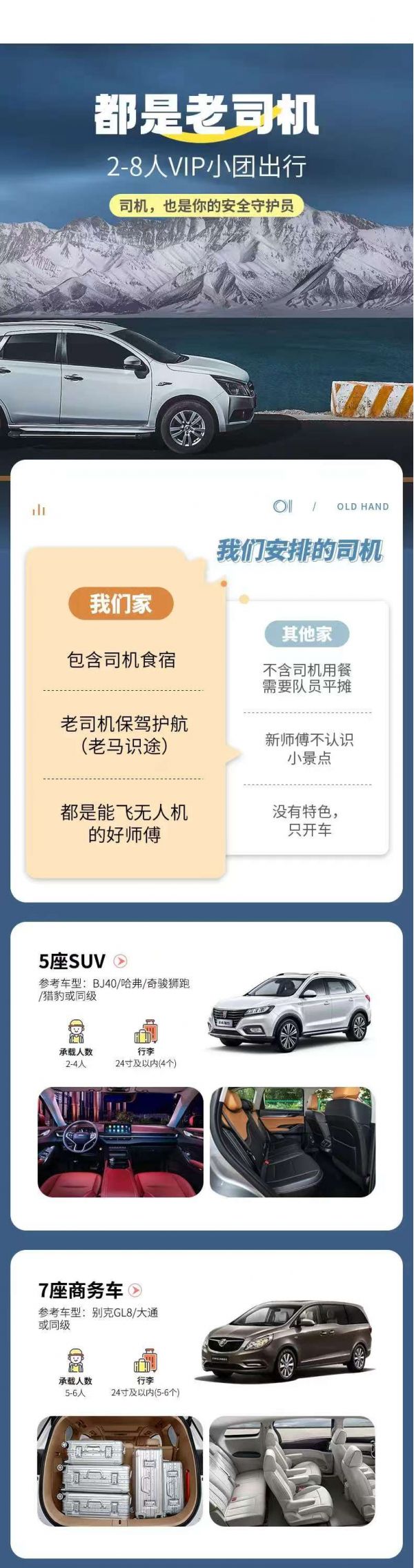 司機(jī):當(dāng)?shù)貙I(yè)司機(jī)兼向?qū)?,?fù)責(zé)行程活動(dòng)中接待服務(wù),不提供景區(qū)講解服務(wù),含司機(jī)住宿補(bǔ)助+司機(jī)用餐補(bǔ)助。