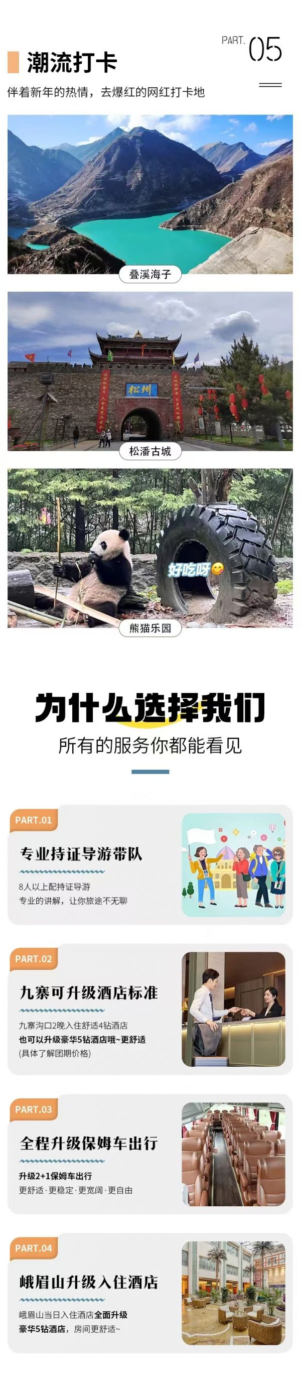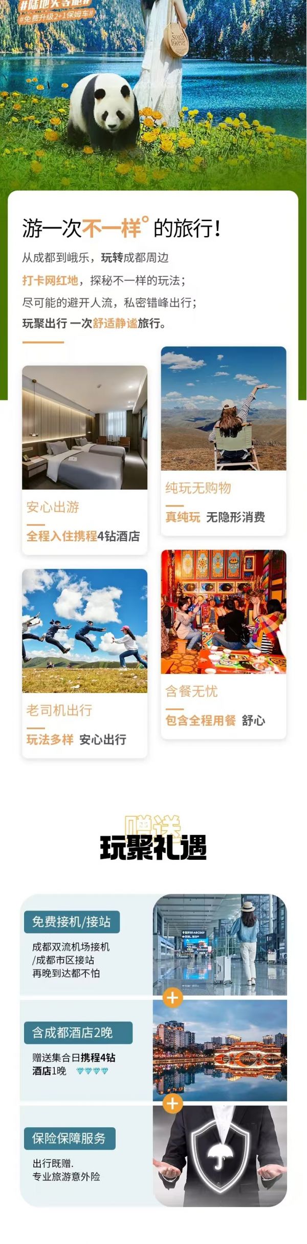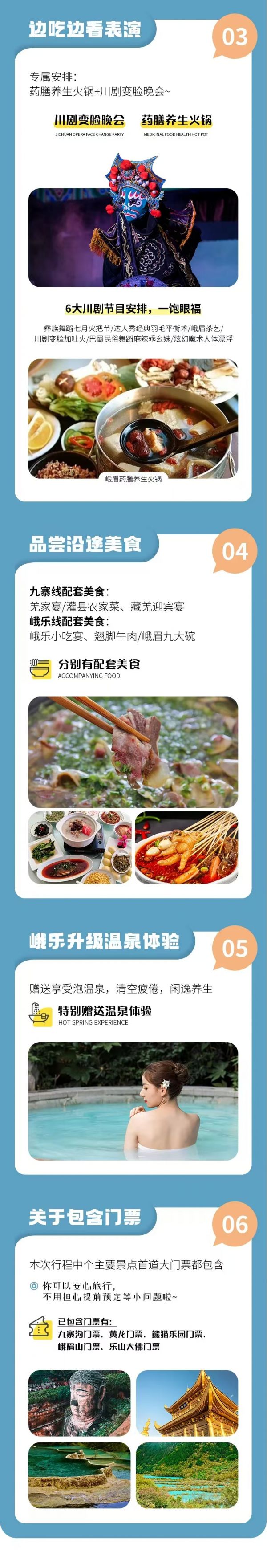 贈(zèng)送:九寨溝景區(qū)旅拍2張精修+底片全送(電子版)、峨眉山溫泉體驗(yàn)、川劇變臉表演晚會(huì)、專業(yè)旅游意外險(xiǎn)(不含財(cái)產(chǎn)險(xiǎn))、2人以上24H成都雙流機(jī)場(chǎng)接機(jī)/成都市區(qū)車站接站