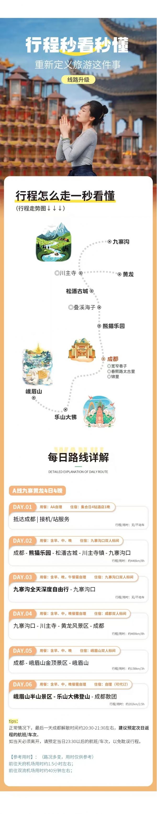 成都市區(qū)統(tǒng)一集合點(diǎn)出發(fā)(節(jié)假日或旺季接人/出發(fā)時(shí)間會(huì)提前約30分鐘,敬請(qǐng)理解)。
