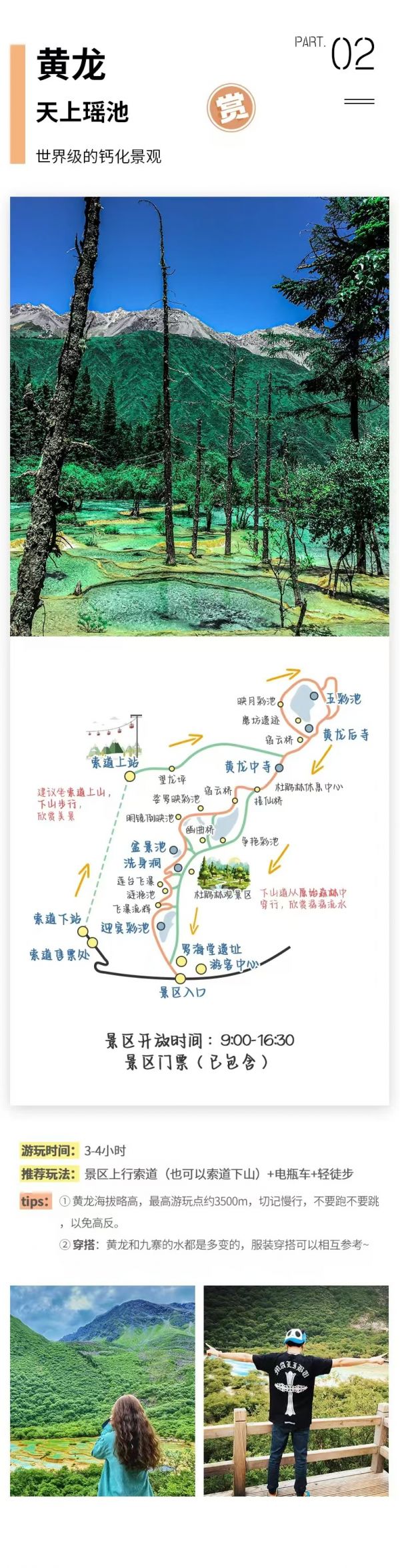 (2)特別提示:12月16日-3月31日期間黃龍索道停運(yùn),屆時(shí)需步行上下游覽黃龍景區(qū),敬請(qǐng)知曉。