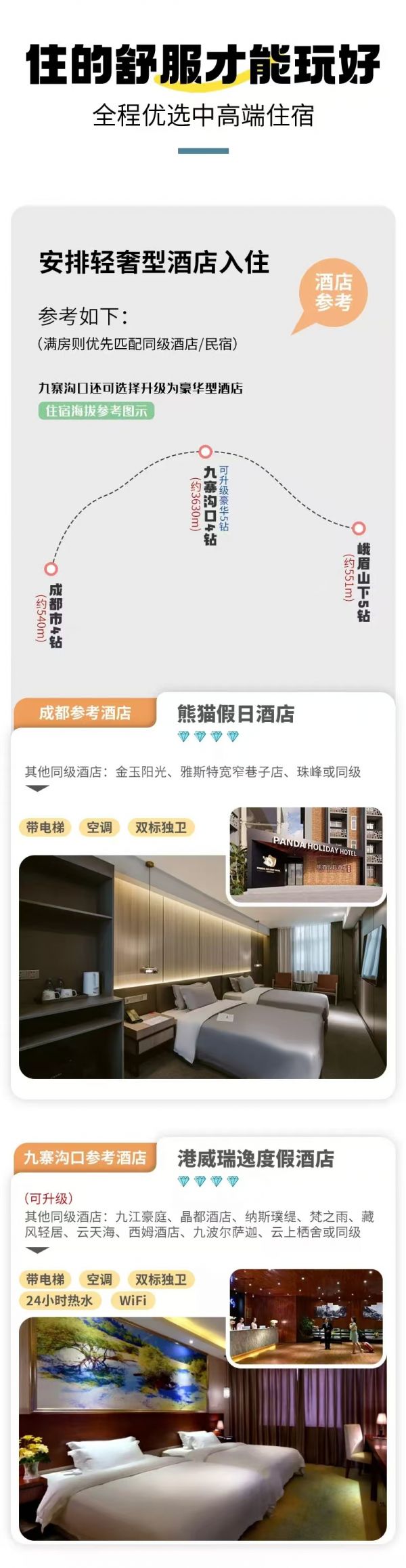 住宿:成都集合日贈(zèng)送攜程4鉆酒店1晚