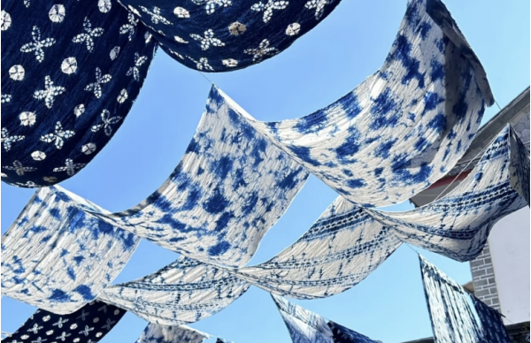 制作時,以棉白布為載體,用天然藍(lán)靛作染料,經(jīng)手工繪圖、扎縫、浸染、漂洗等工序完成。通過獨(dú)特的扎結(jié)技法,布料浸染后形成藍(lán)白相間的精美圖案,常見的有蝴蝶、花草、幾何紋樣等,每一種都寄托著白族對美好生活的向往。