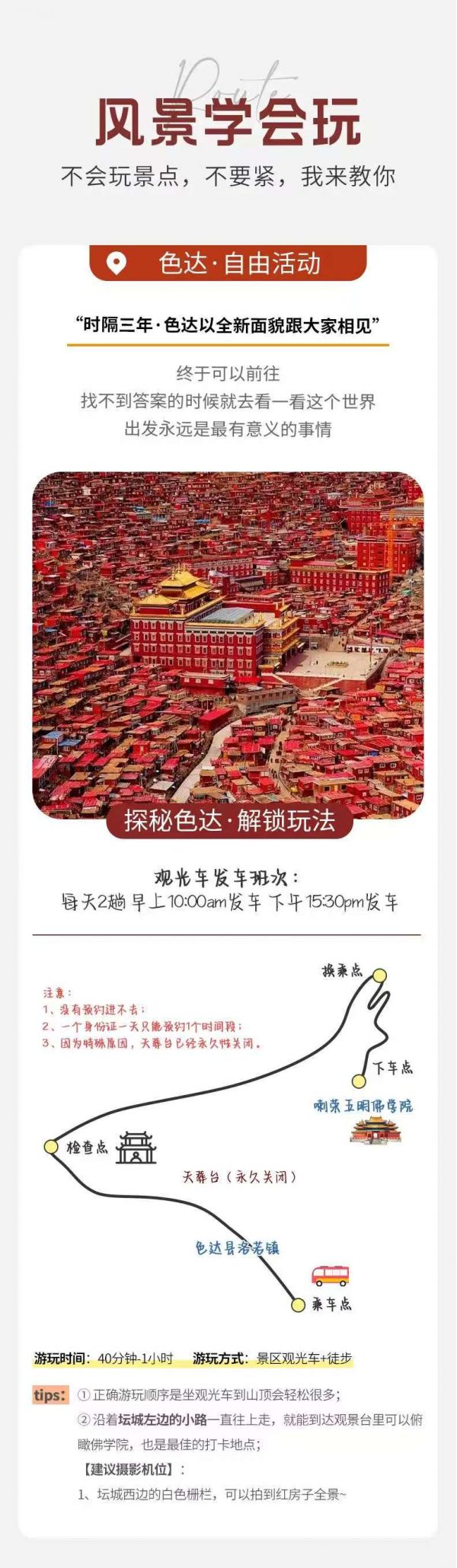 1、觀覽人員請務(wù)必注意各自所購買票務(wù)乘車點(diǎn)位。因色達(dá)當(dāng)?shù)厍闆r特殊景點(diǎn)必須乘坐景區(qū)交通,還望游客諒解!