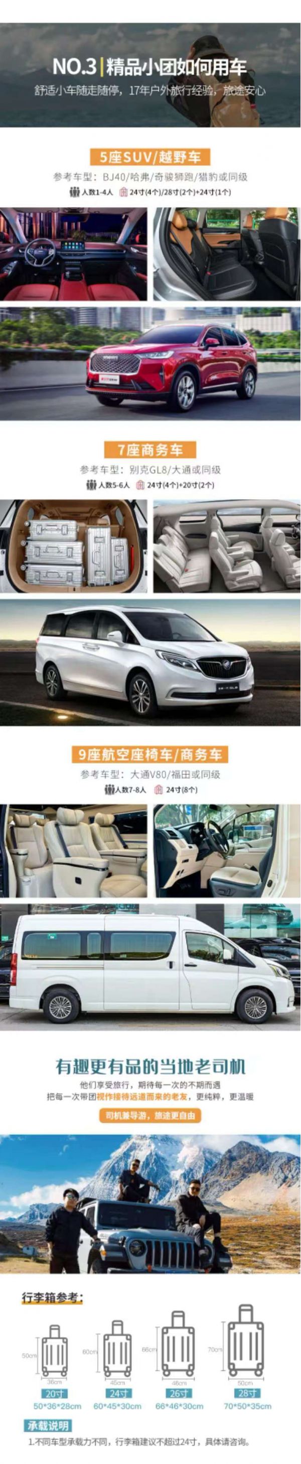 服務:由經(jīng)驗豐富的司機供向導服務(司機不進景區(qū))。