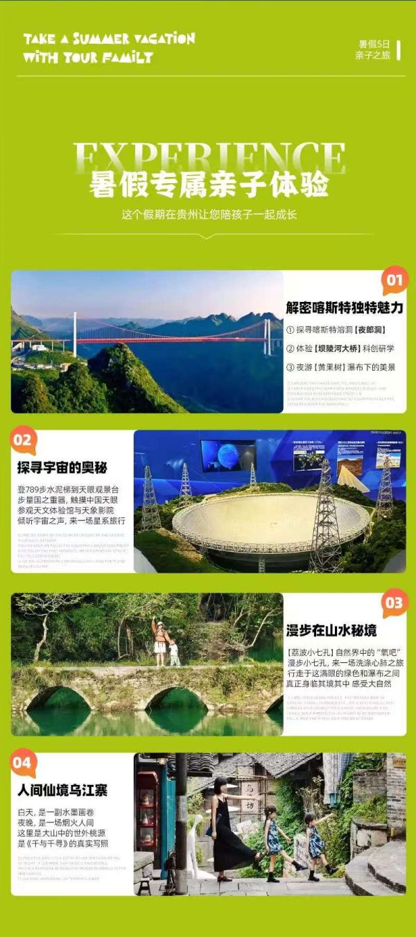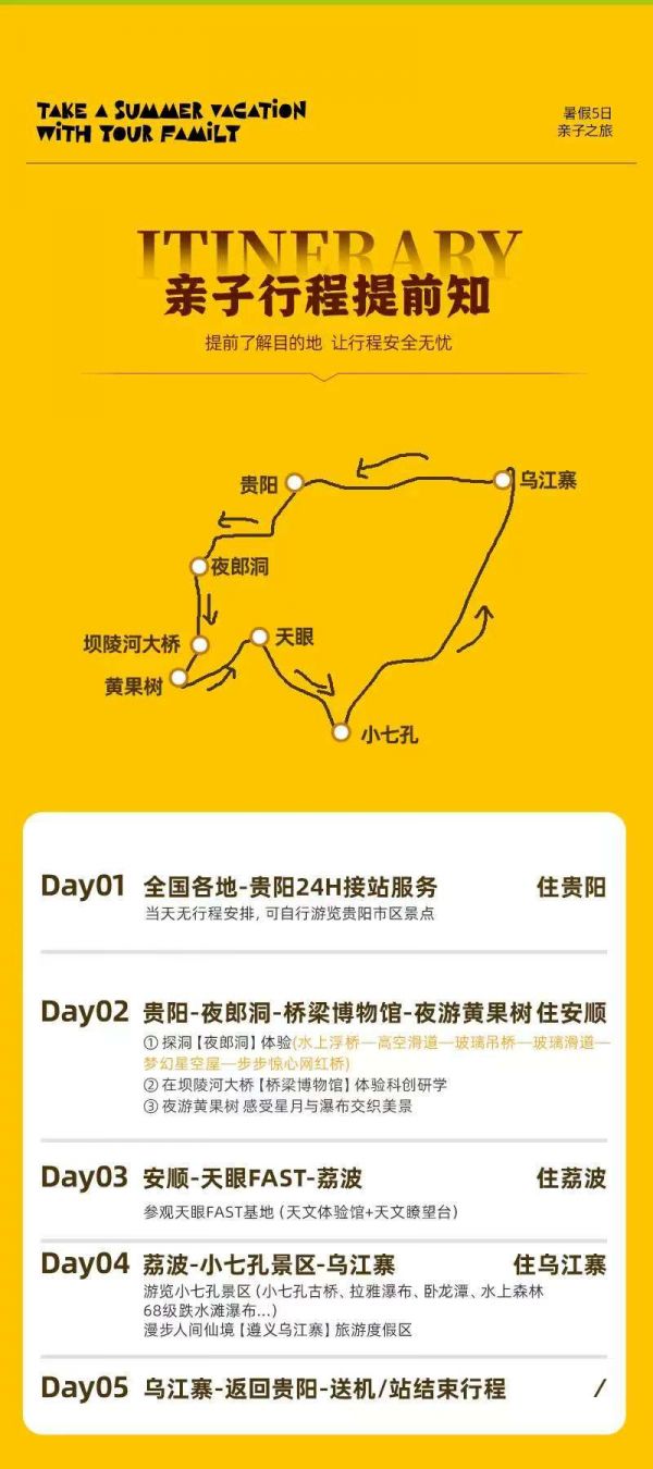 成人包含:含夜游黃果樹(shù)大瀑布+陡坡塘夜游;含小七孔門(mén)票+鴛鴦湖游船;含夜郎洞套票;含橋梁博物館+上橋觀光+講解;含天眼基礎(chǔ)套票+講解;含非遺手工DIY體驗(yàn)