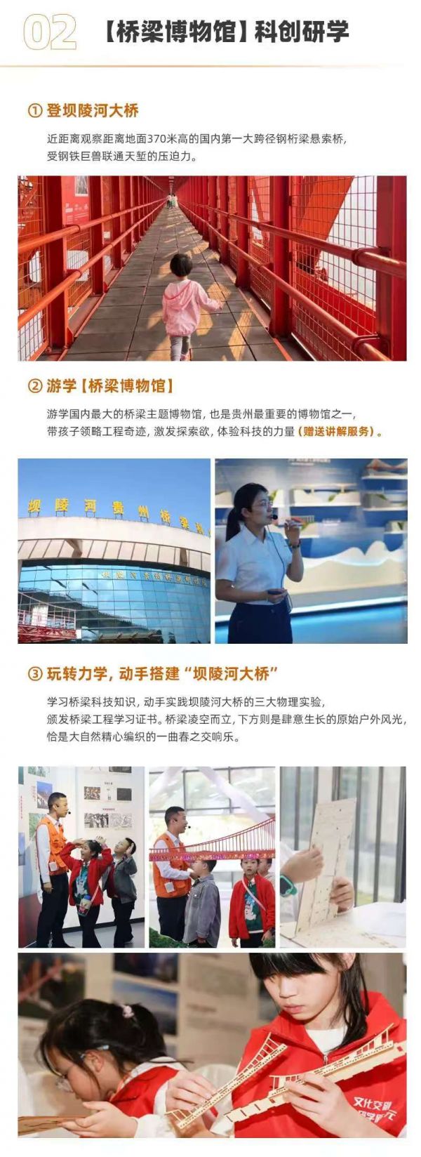 1、游學(xué)國(guó)內(nèi)最大的橋梁主題博物館,也是貴州最重要的博物館之一,帶孩子領(lǐng)略工程奇跡,激發(fā)探索欲,體驗(yàn)科技的力量(贈(zèng)送講解服務(wù))。